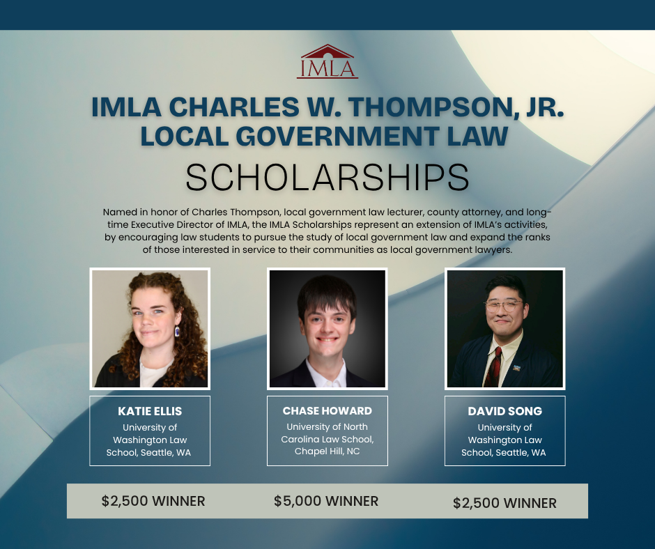We were fortunate to receive a significant number of outstanding applications from law students who evidence a clear interest in serving their communities as local government lawyers. The IMLA Scholarship Committee, consisting of Alan Bojorquez (City Attorney of Buda, Texas), Lori Bluhm (City Attorney of Troy, Michigan), Stephen Louis (Counsel to Center for New York City and State Law at New York Law School), Ben Mount (Senior Assistant General Counsel for North Carolina League of Municipalities) and Erich Eiselt (IMLA Deputy General Counsel and Director of Legal Advocacy), are pleased to announce the winners of the 2026 Charles W. Thompson, Jr. Local Government Law Scholarships: